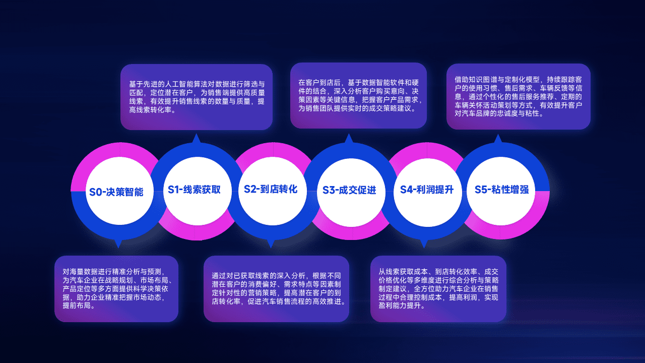 通过拓宽潜在客户来源、、、、优化线索分配并提高到店转化率,,以增强销售效率。。同时,,,,利用线索数据不断优化分析模型,,,有效提升转化率,,扩大营销影响力。。